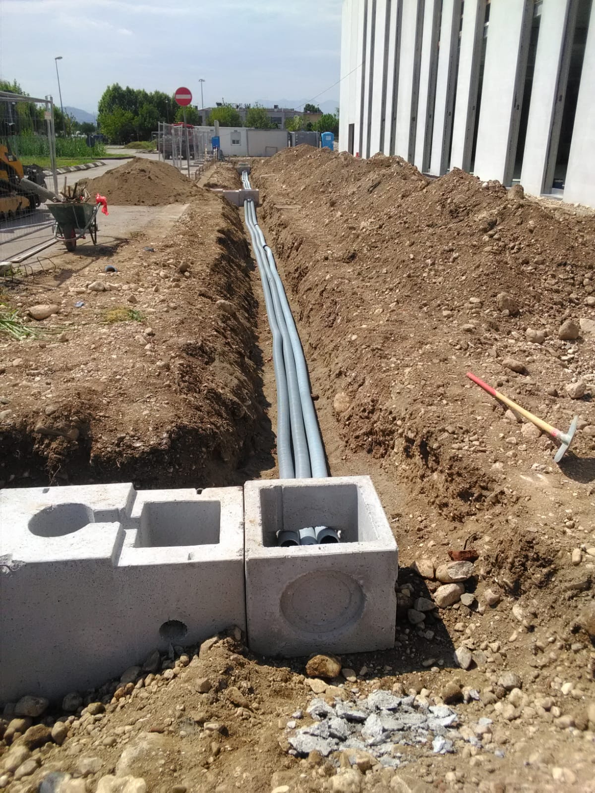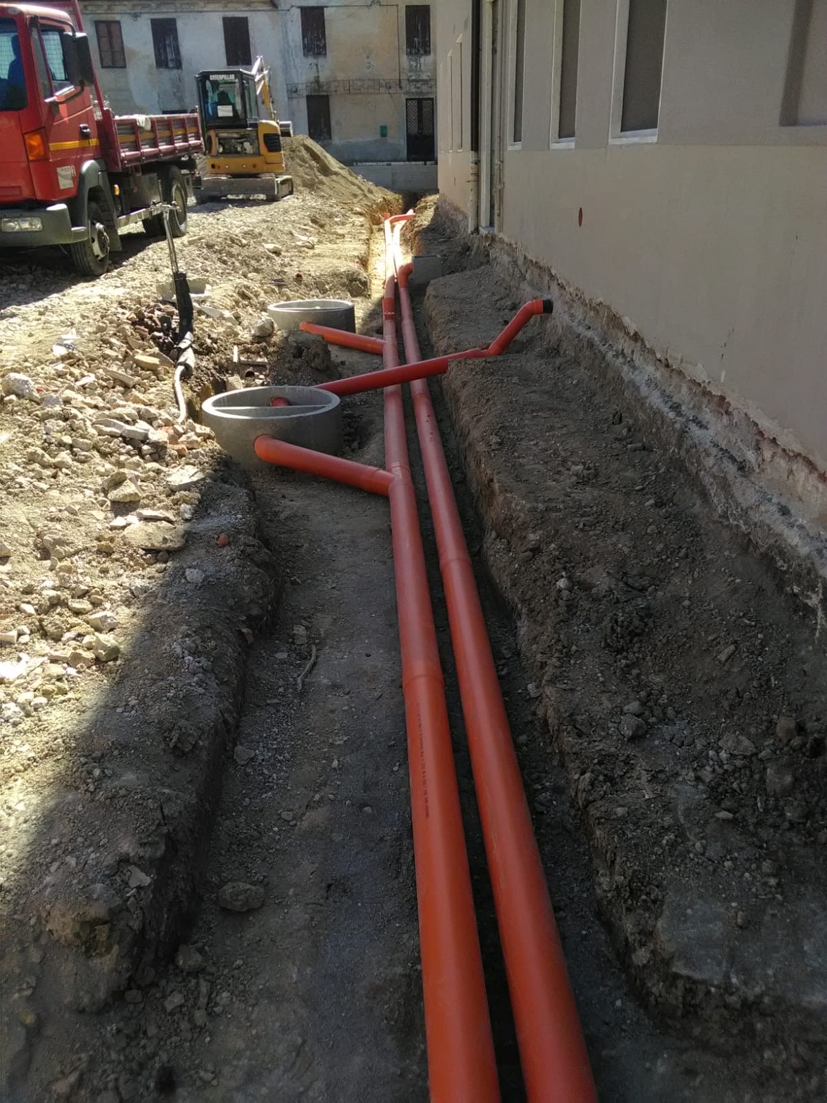 - la fornitura e la posa in opera di pozzetti e botole, tubazioni in PVC,